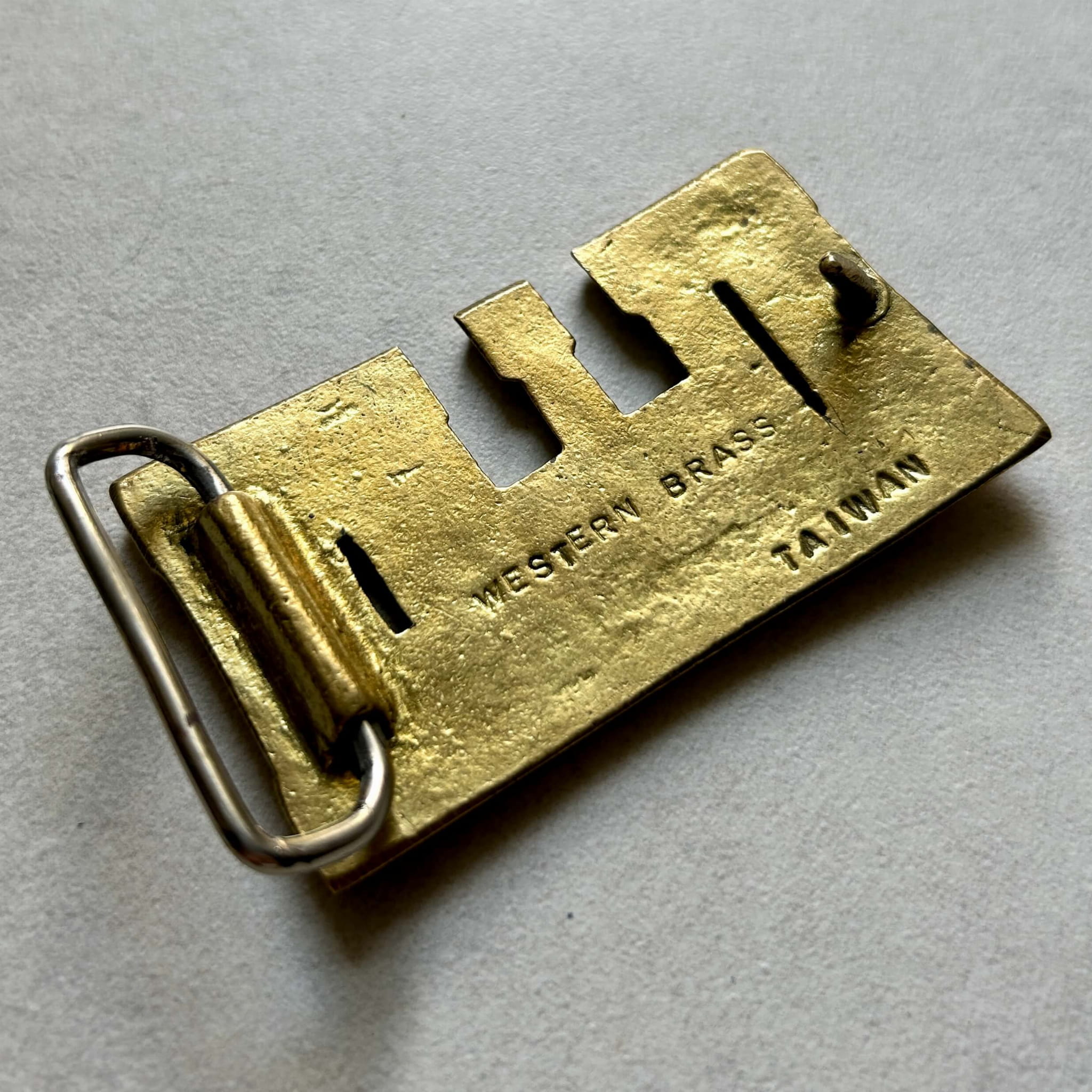 Oryginalna klamra kolekcjonerska pochodząca z Taiwanu lat 1970/80. Jest to personalizowana klamra z napisem "Allen". W całości odlana z mosiądzu, dzięki czemu jest solidna i trwała. Stan bardzo dobry. Na odwrocie sygnatura. Pasuje do paska o szerokości 38 mm. Zgrabna klamra o wymiarach: ok. 80 mm x 45 mm.