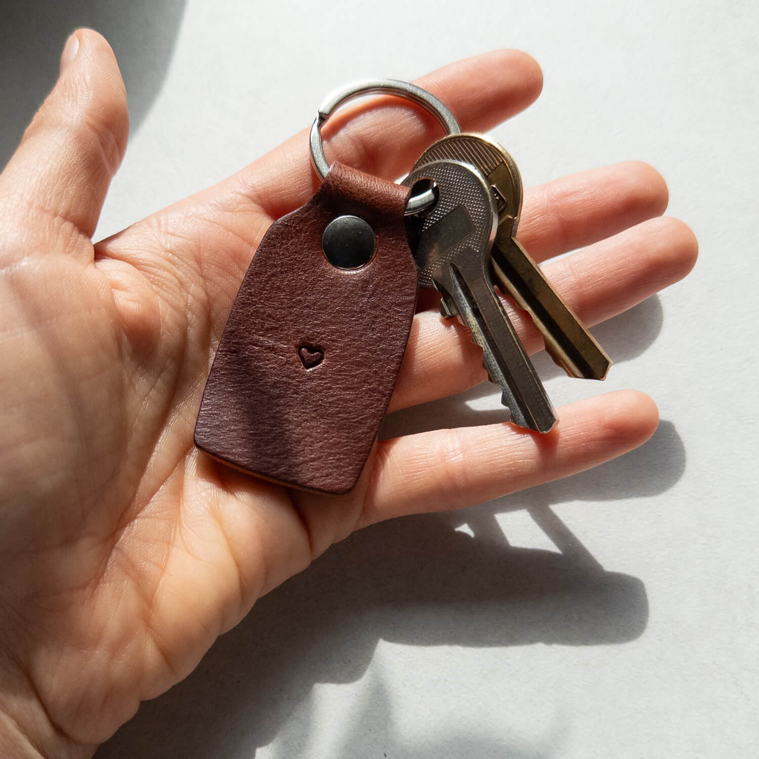 Każdy nasz produkt wykonywany jest ręcznie i na zamówienie. W tym przypadku tłoczymy na na breloku symbol serca.