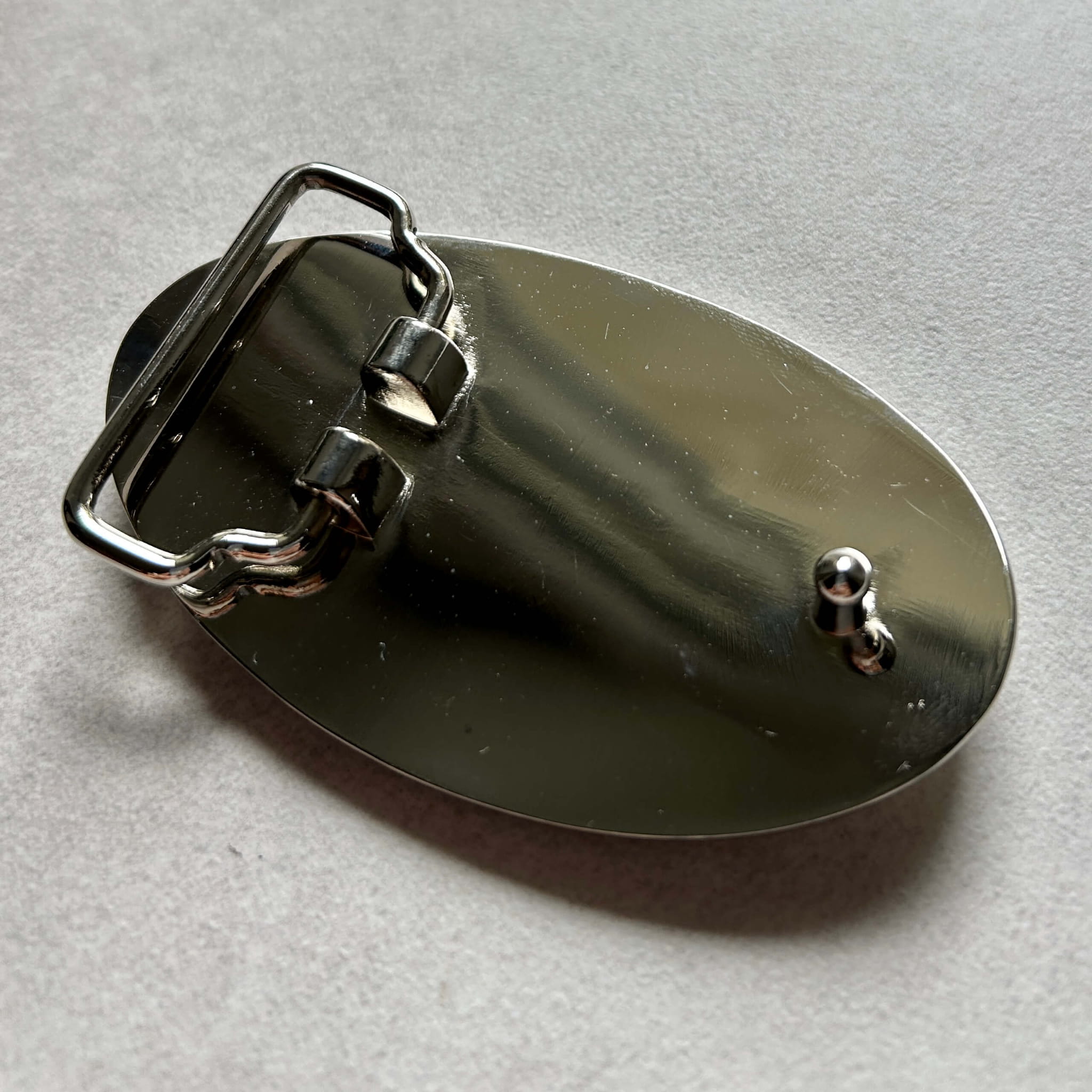 Oryginalna klamra kolekcjonerska z USA pochodząca z lat 1980/90 z logo marki Budweiser, znanej amerykańskiej firmy piwowarskiej. Napis „King of Beers” (Król Piwa) to słynny slogan reklamowy marki używany od dziesięcioleci. Stan bardzo dobry. Pasuje do paska o szerokości 40 mm. Zgrabna klamra o wymiarach: ok. 90 mm x 55 mm.